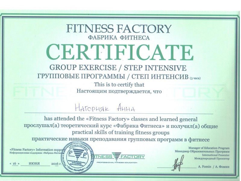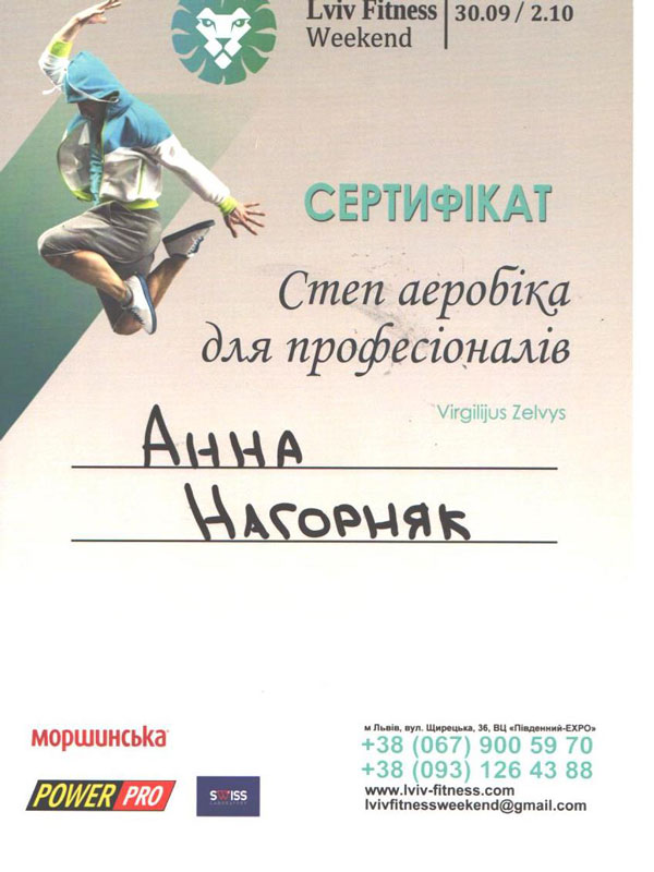 Посада: Старший інструктор групових програм. Персональний тренер.