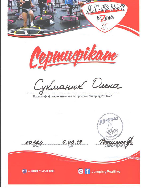 Должность: Персональный тренер. Инструктор групповых программ Jumping Fitness.