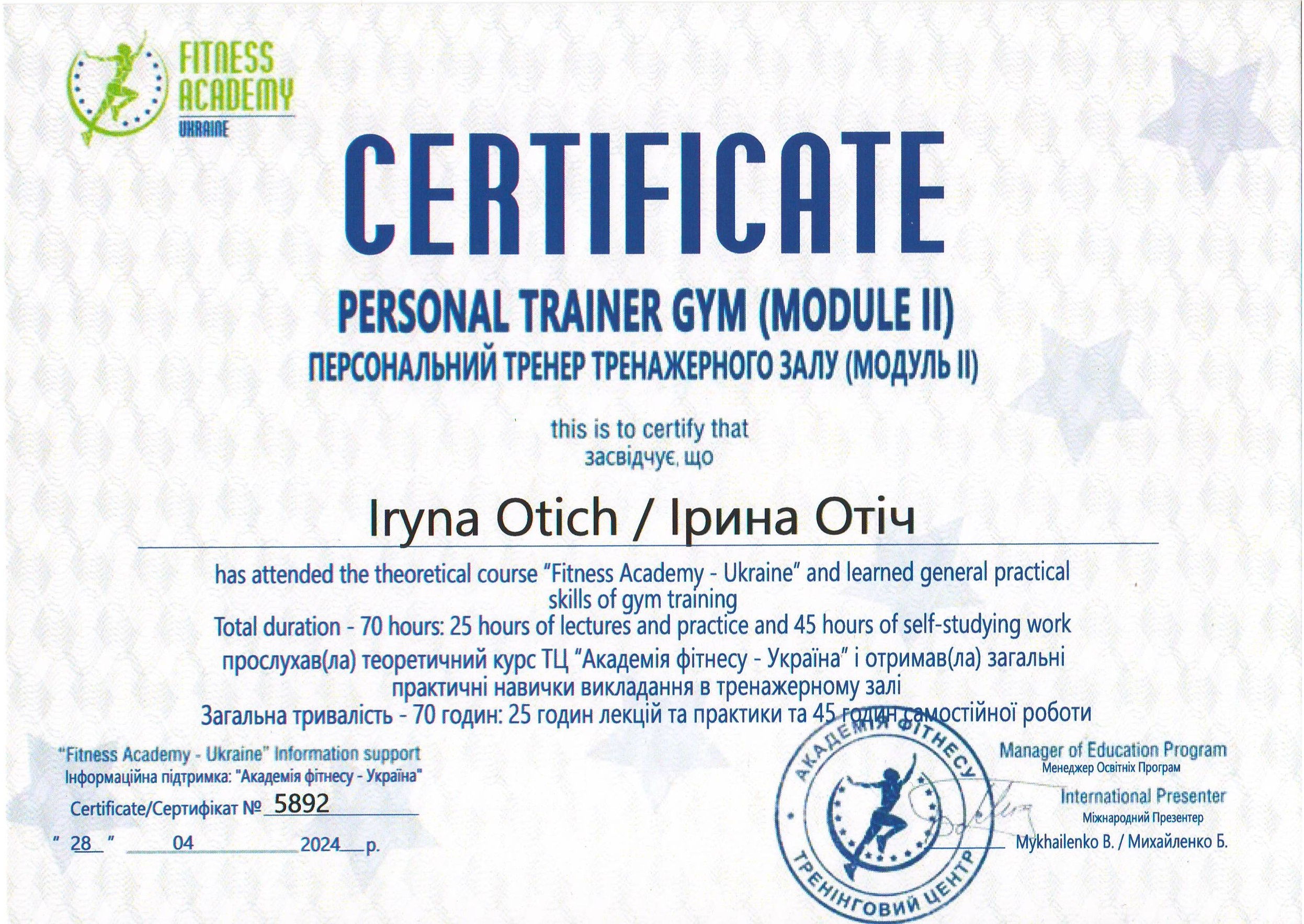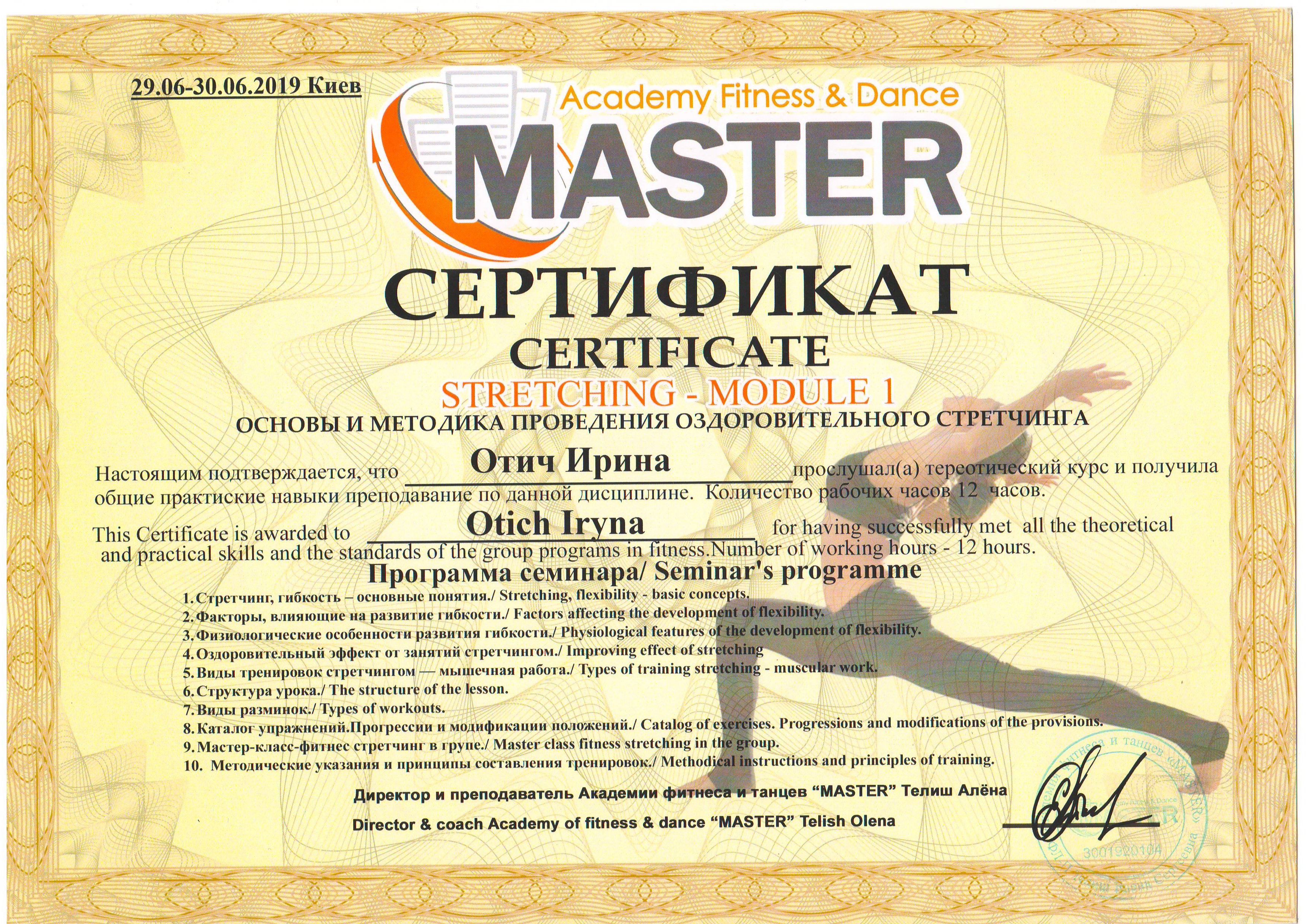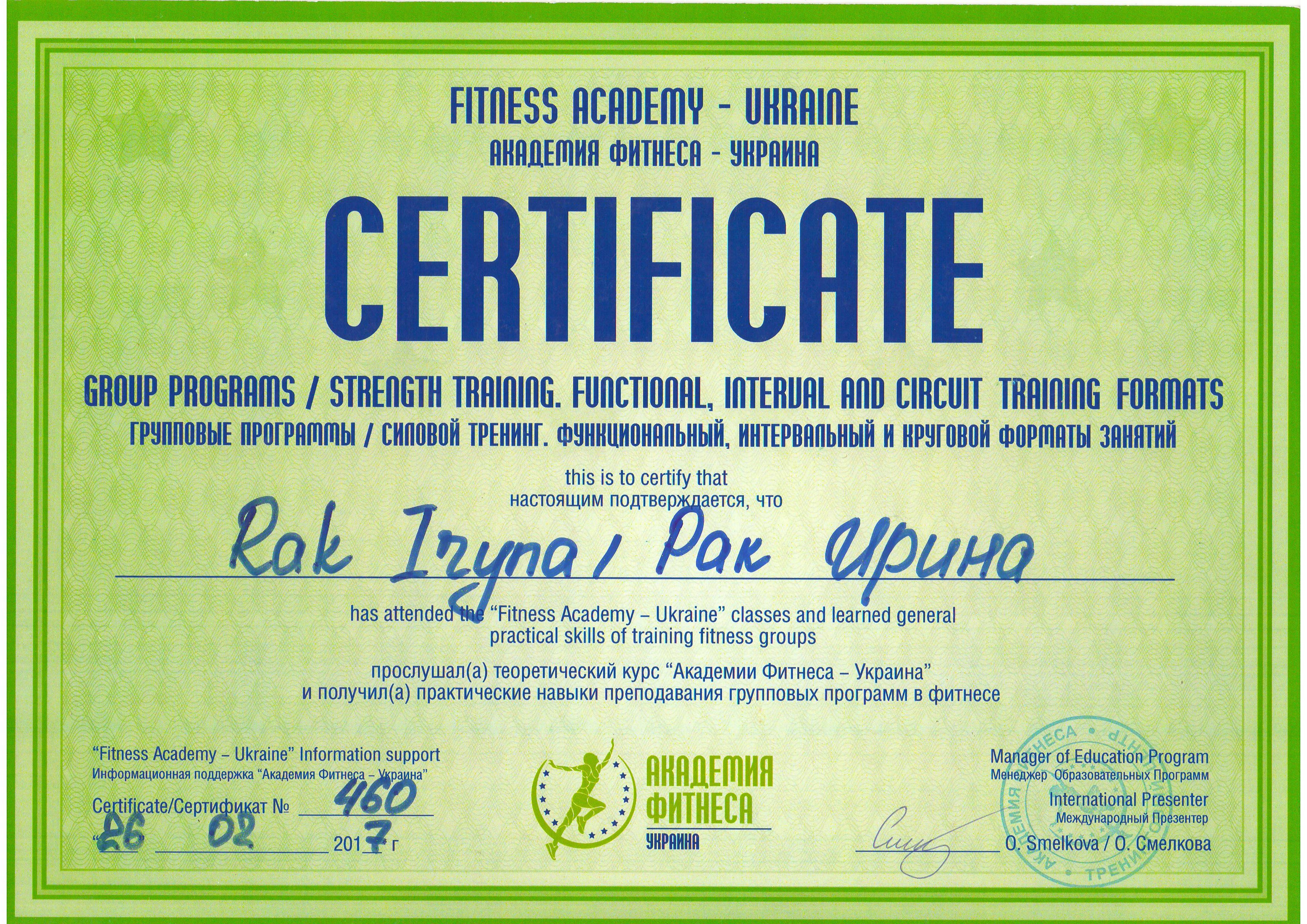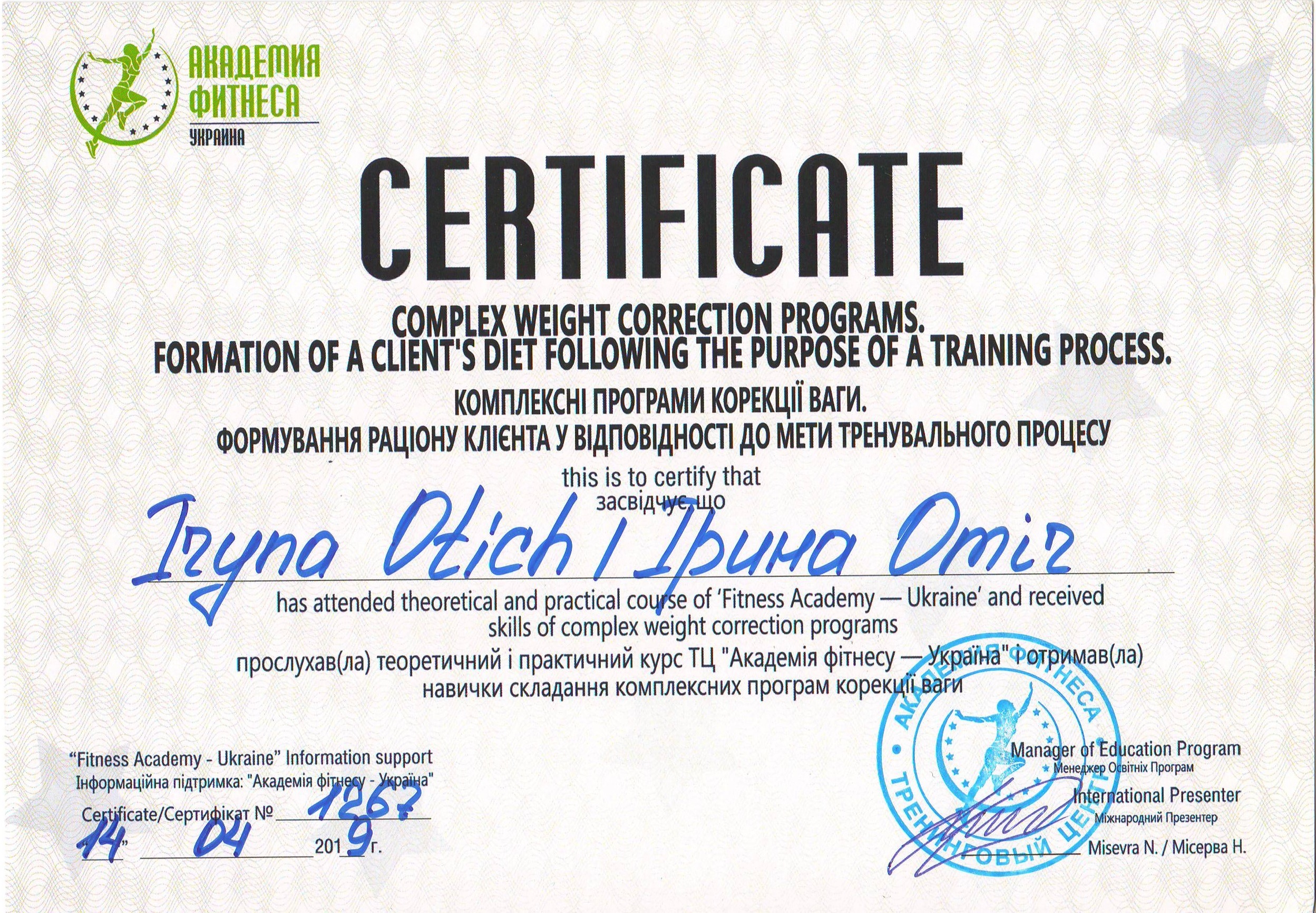 Должность: персональный тренер тренажерного зала, тренер групповых тренировок "FIZRA" и "PILATES".