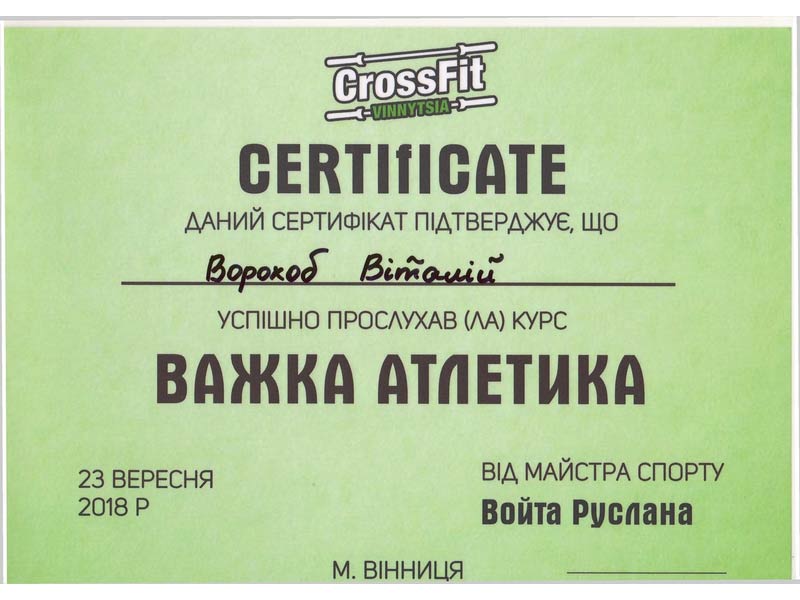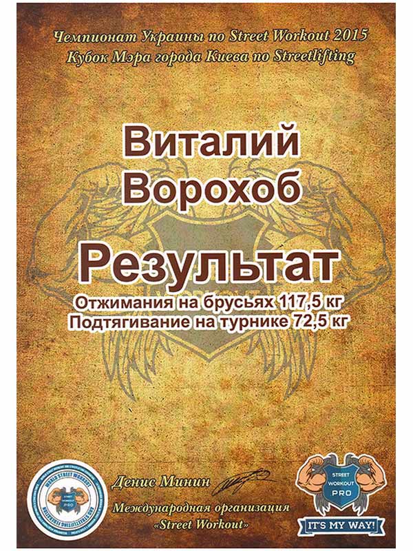 - чемпион Украины по стрит воркаут, а так же силовых функциональных тренировок.